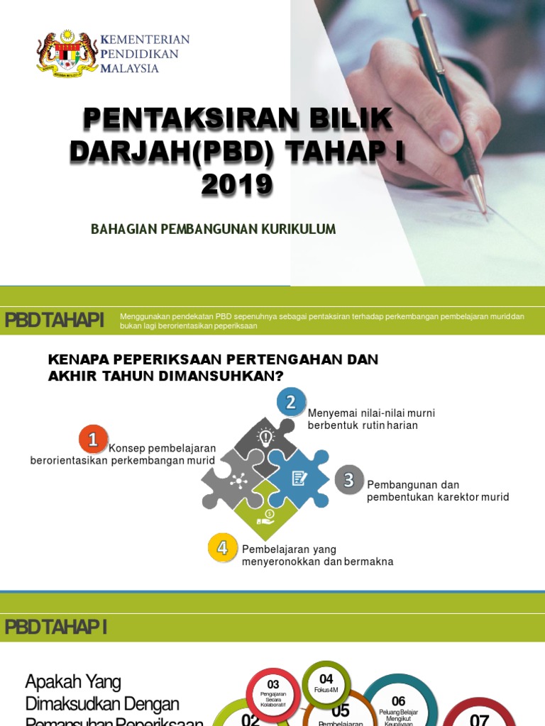 Panduan Pelaksanaan Pentaksiran Bilik Darjah PBD Tahap 1 2019. Pentaksiran Pembelajaran Berorientasikan Guru-guru - Pentaksiran Bilik Darjah - Jempol u0026 Jelebu Facebook. 1 Rajah 2 Organisasi Kandungan Panduan Pelaksanaan PBD 4 Rajah 3 Pentaksiran Formatif dan Sumatif 6 Rajah 4 Ciri Utama PBD 10 Rajah 5 Standard Prestasi.